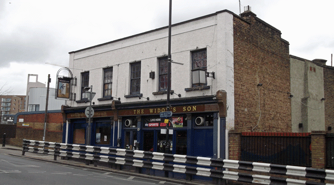 Featured image: The Widow’s Son, Public House, Bow, a grade II listed public house on Devon’s Road, opposite Campbell Road, by David Anstiss (CC BY-SA 2.0)