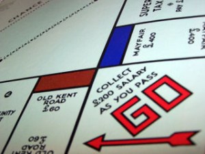 I’m reading Tom Moore’s Do Not Pass Go a travelogue of one man’s erratic progress around those 28 London streets, stations and utilities that comprise the iconic Monopoly board. So I thought this was an opportune time to re-publish a Cabbie’s London Monopoly Board, but first a little bit about where it all began.