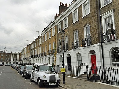 And finally, here we are in Gibson Square. This is another characterfully desirable address, another loop of Georgian terraces surrounding another landscaped garden. This one has a Victoria line airshaft at the centre, suitably camouflaged, and a short cross-Islington rat-run at the bottom with many a taxi driver passing through. I wonder if the drivers remember this as the end of their very first memorised route every time they drive by.