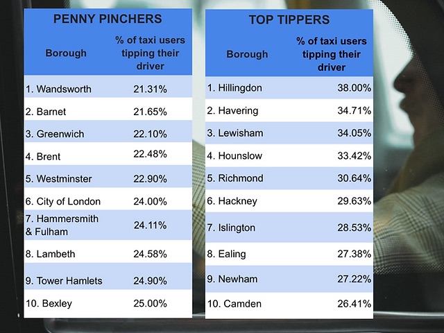 One old cabbies’ saying goes ‘Bermondsey pays better than Belgravia’, reflecting the sadly true notion that generosity is more likely found among working Londoners than the gentry. Now payment app Lopay has analysed 57,816 fares paid to more than 2,000 taxi and private hire drivers in the capital and found that just 1 in 5 passengers alighting in Wandsworth’s wealthy enclaves tipped their driver, barely half the figure recorded in top-tipping Hillingdon.