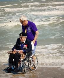 Picture of me taking Roy Smith, a veteran back to Sword beach because he always felt guilty about landing there in 1944 on D-Day and not getting his feet wet.
