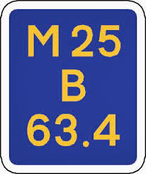 The font used on the road signs is called, unsurprisingly, Motorway. While all distances on signs are given in miles, the driver location signs set at 500-meter intervals for emergency services are, for reason unknown, calculated in kilometres from a point near junction 31. Thus: M25 B 63.4